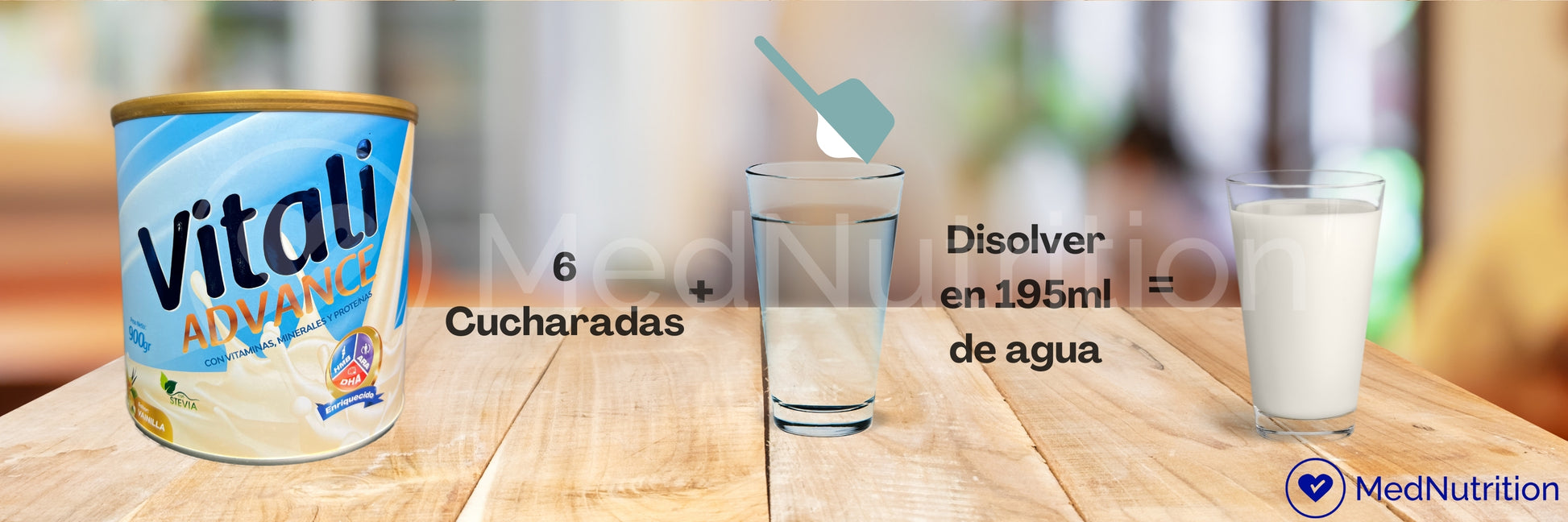 Enriquecido con ácidos grasos esenciales (DHA, EPA, ARA) para el cuidado del corazón y el cerebro, y Betaglucanos que refuerzan el sistema inmune. Fácil de preparar: mezcla 6 cucharadas en 195 ml de agua para una deliciosa porción de 230 ml con sabor a vainilla. Presentado en lata de 900 gramos, Vitali Advance es tu elección para una nutrición completa y un estilo de vida activo. ¡Energiza tu día con Vitali Advance!